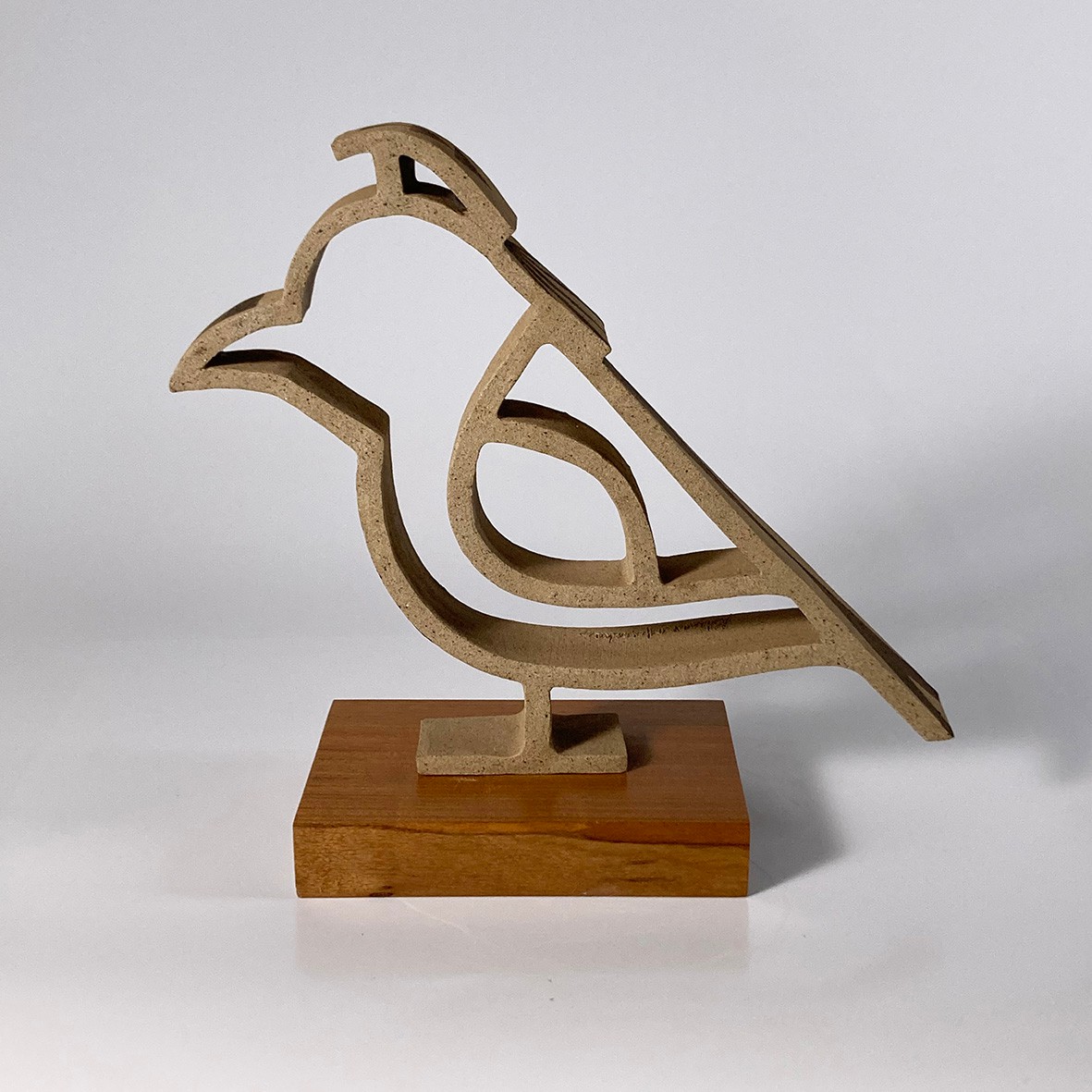 Considerado como deuses no Egito, o falcão representa a realeza, superioridade, liberdade, iluminação e espiritualidade. Um animal de poder que traz boas energias a qualquer decoração moderna. Escultura modelada à mão livre em argila tabaco, com detalhes em engobe preto, e apoiada em base de madeira maciça (imbuia) reaproveitada.